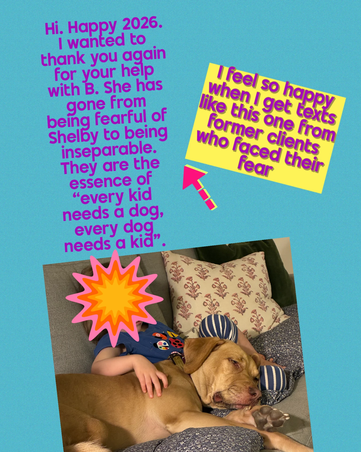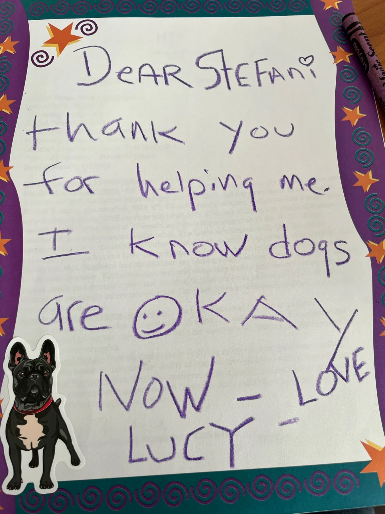 Exposure therapy is an evidence based intervention and the best approach to help people face their fear of dogs. By using this technique, the fear gradually diminishes as we increase the exposure to well behaved and dependable dogs. We practice mindfulness, affirmations and breathing techniques to manage the “fight or flight” response which is a result of the phobia. I also educate people on dog behavior and body language, because we’re afraid of things we don’t understand.